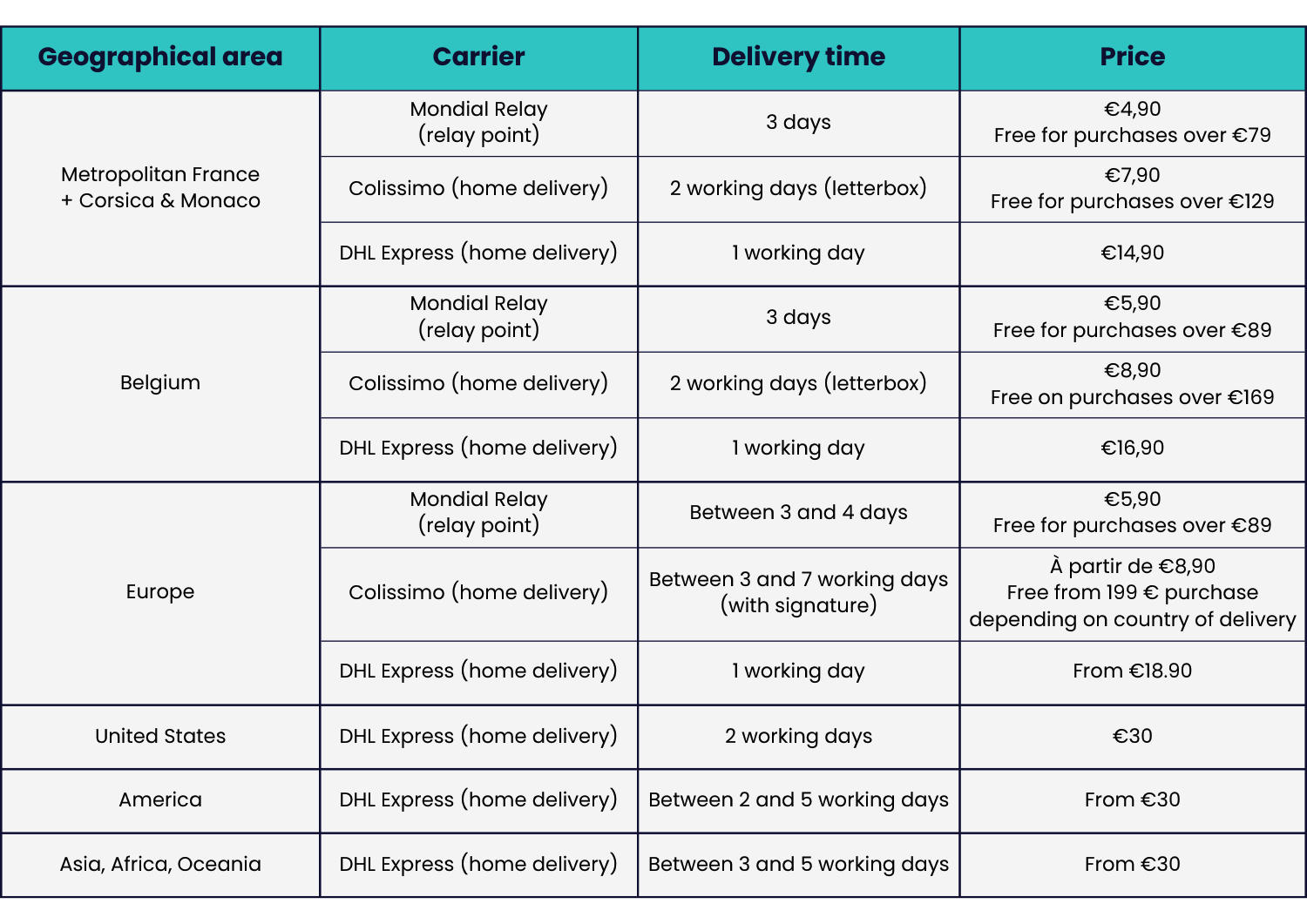 We offer a free Click & Collect service at our headquarters in Tourcoing (France).